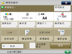 一次最多可以掃描並儲存999頁。若使用送稿機掃描雙面原稿,則最多可以儲存1,000頁。一旦達到可以掃描的原稿的最大數量,則會出現一條訊息詢問是否儲存。