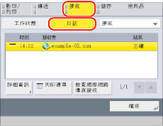 顯示所選工作的詳細資訊。檢查詳細資訊→按[確定]返回「接收」螢幕。