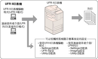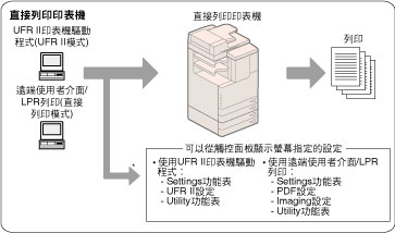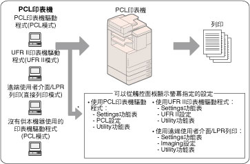 UFR II、PCL、PS和直接列印印表機操作的差異性