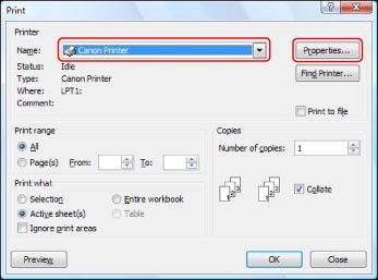 In the [Print] dialog box, click [Properties].