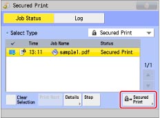 Select the secured job to print → press [Secured Print].