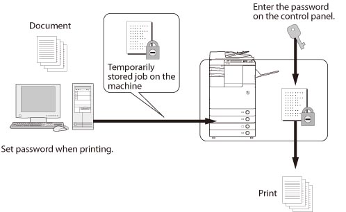 You must enter the password again to print from the machine. After the password is set on the document, write down the password and keep it in a safe place.