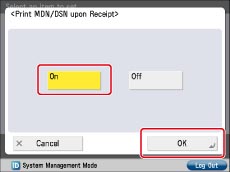 Follow the procedure below to set [Print MDN/DSN upon Receipt] to 'On'.