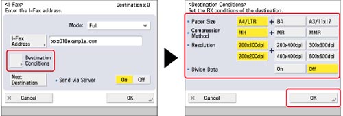 Press [Destination Conditions] → set the recipient's condition → press [OK].