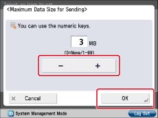 Press [-] or [+] to set the maximum data size for sending → press [OK].