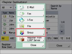 If you register a group that includes multiple e-mail addresses in the address book, you can send to all of the e-mail addresses included in that group at once by selecting that group as the destination.
