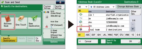 Press [Address Book] → press the drop-down list → select