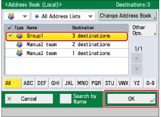 Select the newly registered destination [Group 1] → press [OK].