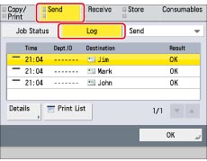 Press [Send] → [Log].