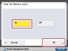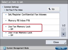 Press [Set Fax/I-Fax Inbox] → [Use Fax Memory Lock].
