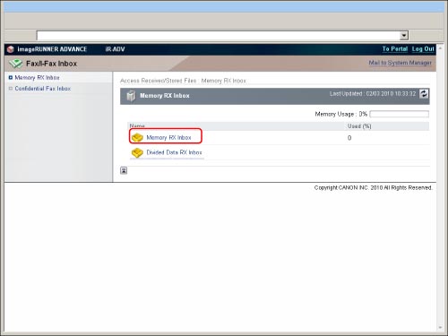 Click [Fax/I-Fax Inbox] → [Memory RX Inbox] → [Memory RX Inbox].