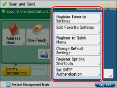 [Set SMTP Authentication] appears only on the function screen for [Scan and Send]. For more information on setting the SMTP authentication, see "Using SMTP Authentication for Each User."
