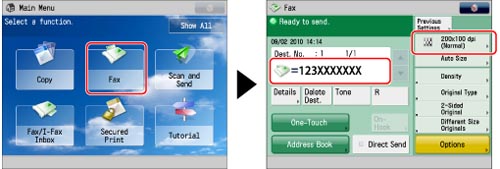 Press [Fax] → specify the desired destinations → press the resolution button.