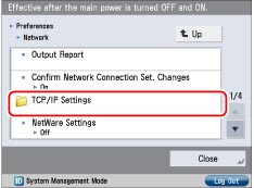 Press [Preferences] → [Network] → [TCP/IP Settings].
