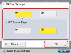 Press [On] to use LPD as the print application.