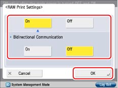 Press [RAW Print Settings] for [TCP/IP Settings] → specify the following items → press [OK].