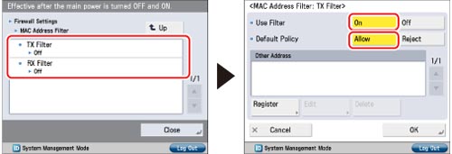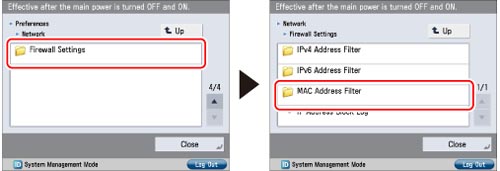 Press [Firewall Settings] for [Network] → press [MAC Address Filter].