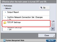 Press [Preferences] → [Network] → [TCP/IP Settings].