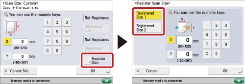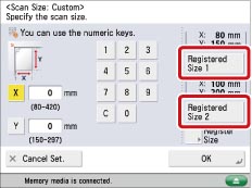 Press [Register Size] → [Registered Size 1] or [Registered Size 2].