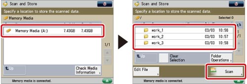 As an example, the procedure for selecting memory media as the storage location is explained in this section.