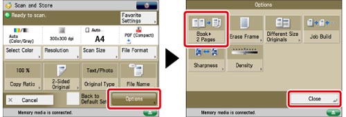 This mode enables you to scan facing pages of a book or bound original, and then print or store them as two separate pages.