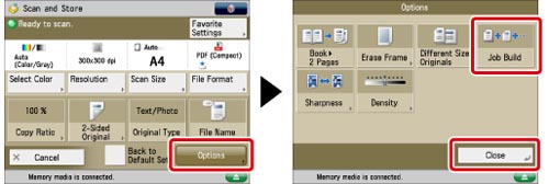 If you want to scan one-sided and two-sided originals and store them as two-sided documents, divide the originals into one-sided and two-sided batches. For example, if the first batch consists of two-sided originals, set the 2-sided Original mode. Thereafter, you have to manually set or cancel the 2-sided Original mode for each batch of originals that you scan.