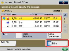 As an example, the procedure for printing files that are stored in memory media is explained in this section.