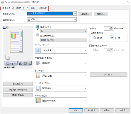 [詳細設定]は、アプリケーションによっては、「プリンターのプロパティ」または「プロパティ」の場合があります。