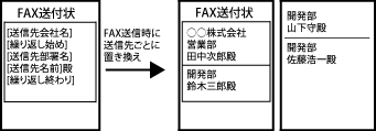 繰り返し設定を行ったフィールドは、ドライバーで指定した送信先の数だけ繰り返して実際のデータと置き換えられます。