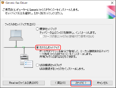 [カスタムセットアップ]を選択 → [次へ]をクリック