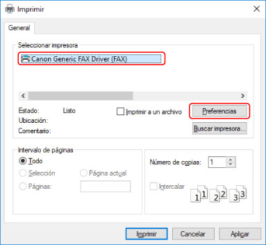 En función de la aplicación, [Preferencias] puede denominarse "Propiedades de impresora" o "Propiedades".