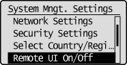 ] to highlight <Remote UI On/Off>, and then press [OK].