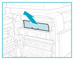 The fixing unit and its surroundings inside the printer are hot during use. Make sure the fixing unit is completely cool before removing the jammed paper. Touching the fixing unit when it is still hot may result in burns.