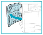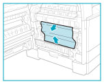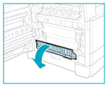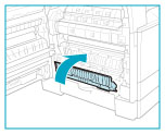 The fixing unit and its surroundings inside the printer are hot during use. Make sure the fixing unit is completely cool before removing the jammed paper. Touching the fixing unit when it is still hot may result in burns.