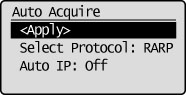 Obtains the IP address using RARP. (The RARP daemon needs to be running.) <Auto IP>