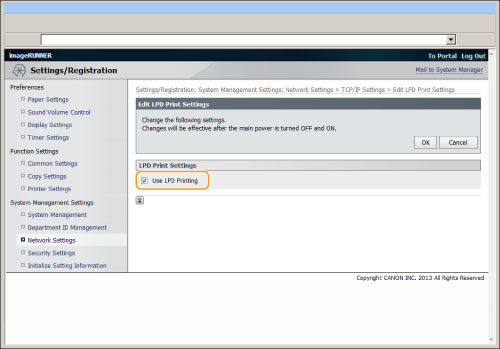 Clear the [Use LPD Printing] check box. ![]() |