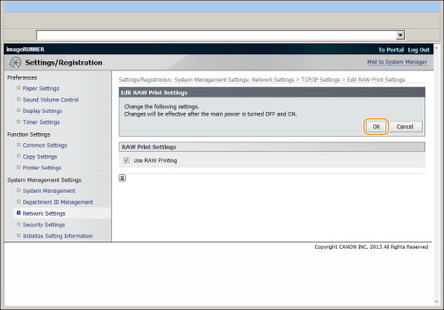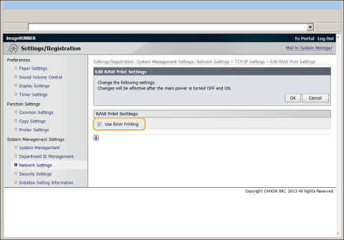 Clear the [Use RAW Printing] check box. ![]() |
