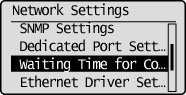 ] to highlight <Waiting Time for Connection at Startup>, and then press [OK].