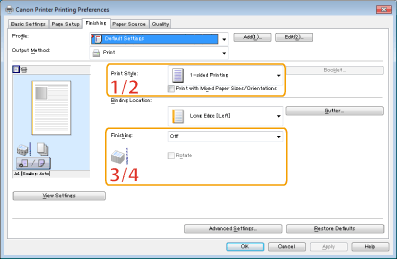 For instructions on how to display the printer driver screen, see "Printing" or "Configuring the Default Print Settings."