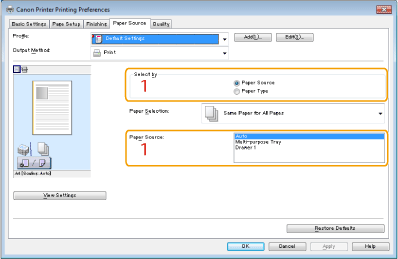 When you want to print on a specific type of paper, specify the paper source containing the paper, or the paper type.