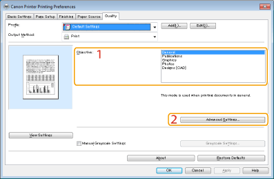 For instructions on how to display the printer driver screen, see "Printing" or "Configuring the Default Print Settings."