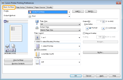 For instructions on how to display the printer driver screen, see "Printing" or "Configuring the Default Print Settings."