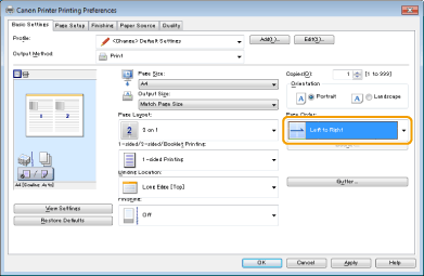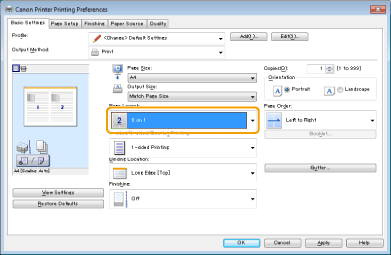 If you cannot select the options for [Page Layout], display the [Device Settings] tab, and then select [Auto] or [Enabled] from [Spooling at Host]. For instructions on how to display the [Device Settings] tab, see the online help. (See "Viewing the Online Help.")