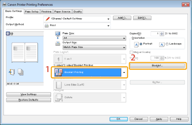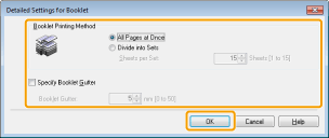 For details about the various settings in the [Detailed Settings for Booklet] dialog box, view the online help. (See "Viewing the Online Help.")