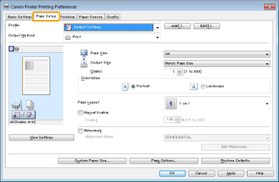 For instructions on how to display the printer driver screen, see "Printing" or "Configuring the Default Print Settings."