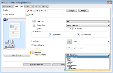 You can print a watermark (such as "CONFIDENTIAL" or "COPY") on a document created using an application. You can also register customized watermarks in addition to the predefined watermarks.