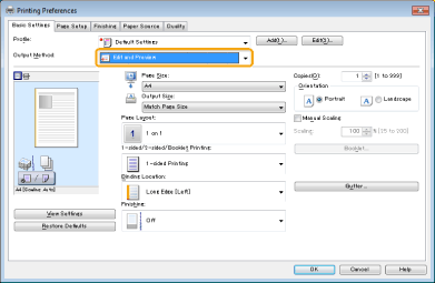 For details about the Canon PageComposer settings, see the Canon PageComposer online help.