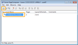 Select the combined file you want to print from [Document Name] -> click [] (Print).