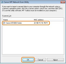 To scan documents by connecting to a network, you need to register the scanner in MF Network Scan Utility.
