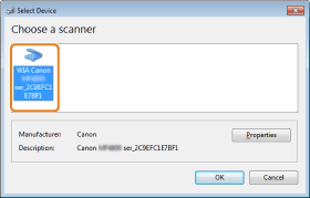 Follow the procedures below when the WIA driver is displayed. For details on displaying the WIA driver, see the following.